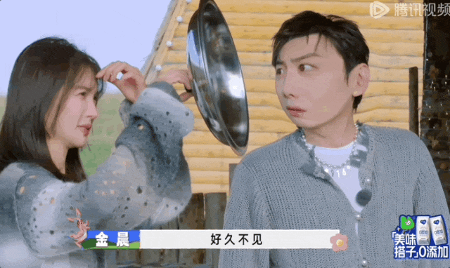 于是拿起了旁边的锅盖,贾冰转头一看,金晨在用锅盖照镜子,配上后期给白敬亭加的大头特效,这画面更好笑了。