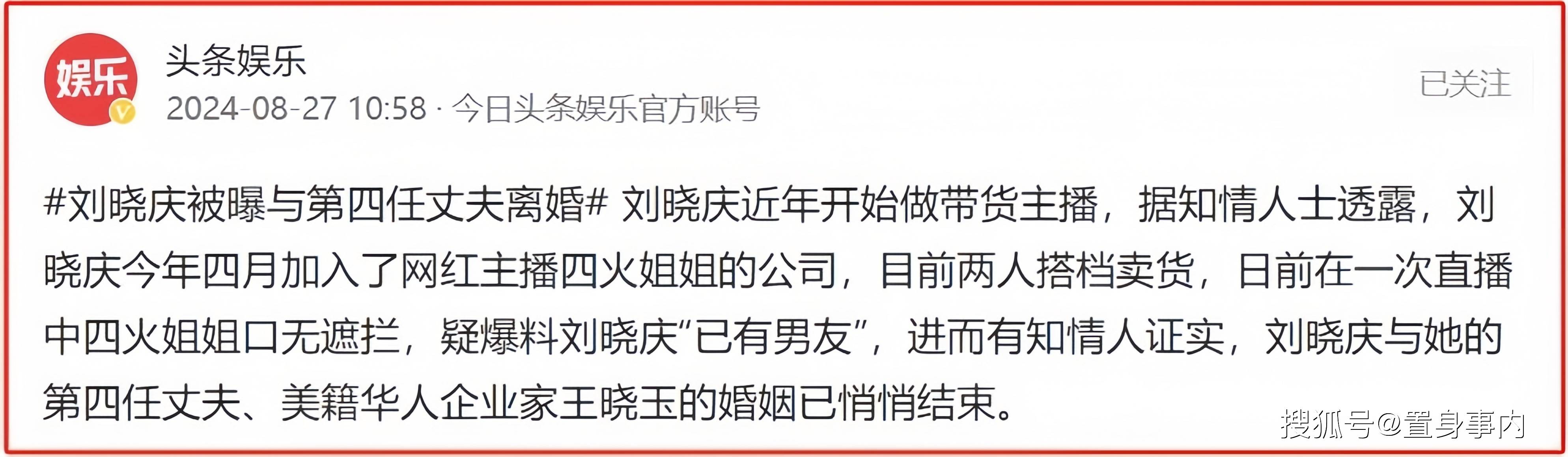 此外,有知情人爆料刘晓庆已与第四任丈夫王晓玉离婚,且聊天记录显示其身边工作人员似乎对她有八个男朋友的事心知肚明。
