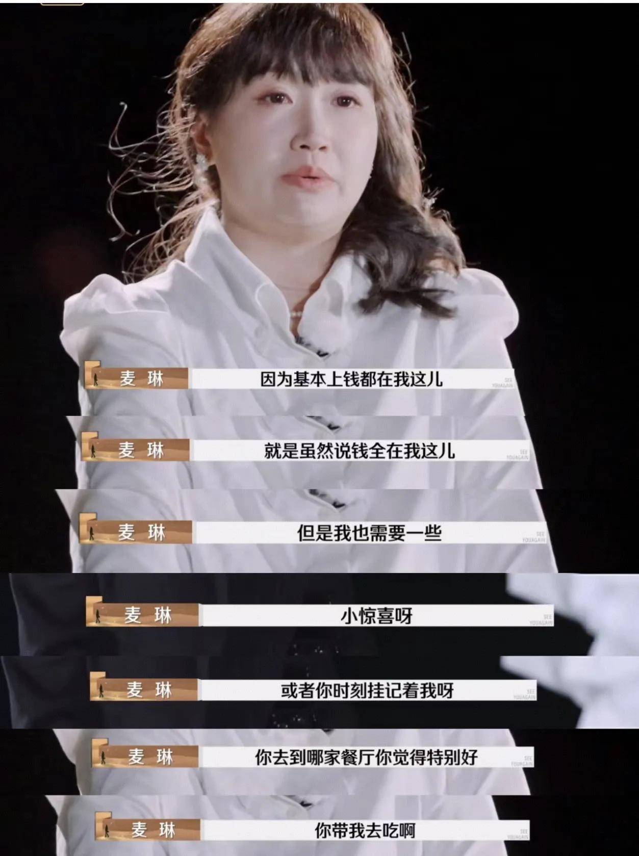 最好笑的是麦林还在节目里说,虽然钱都在我这,但是我也是需要一些小惊喜的嘛。