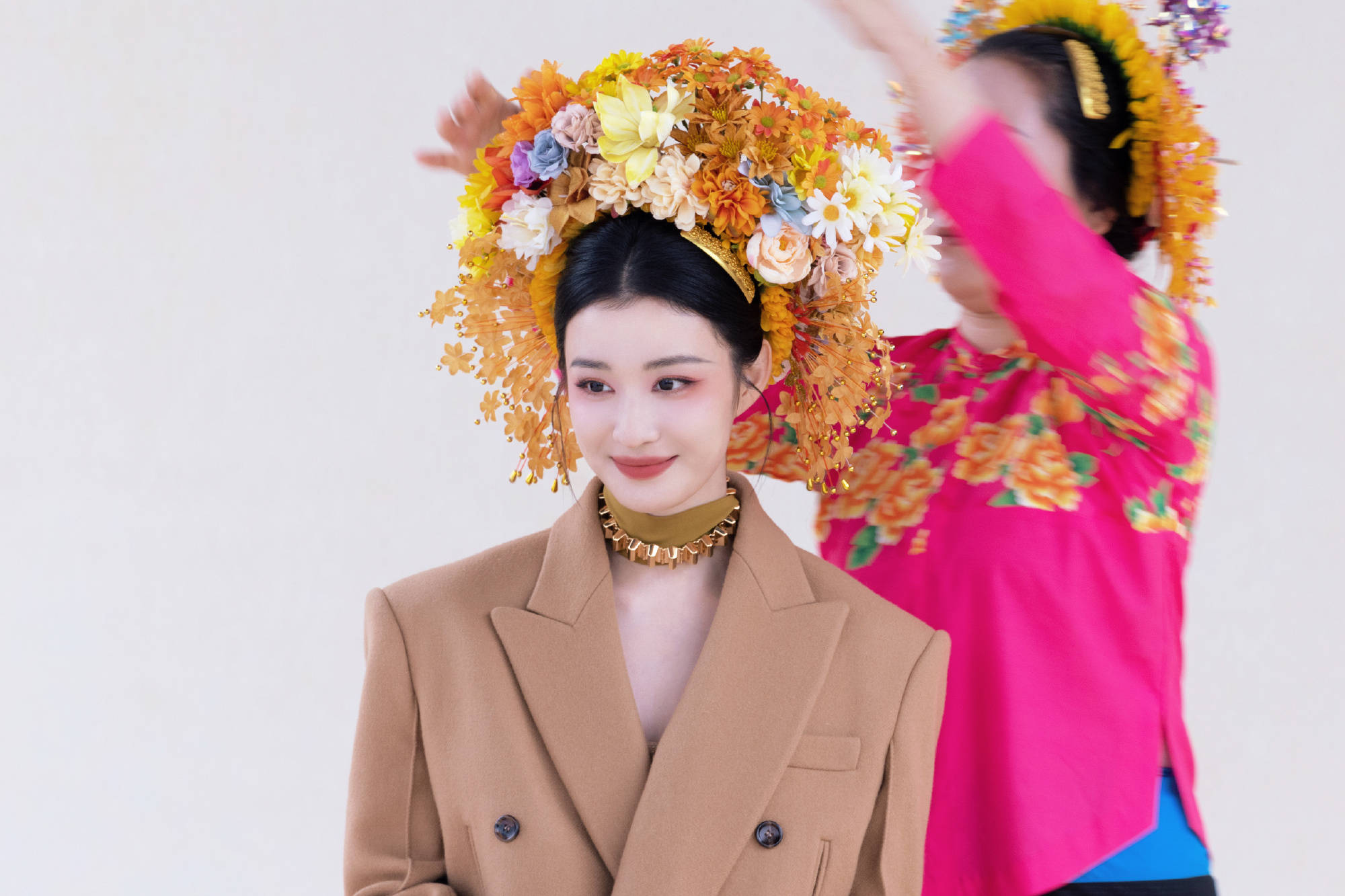 王楚然簪花造型明媚动人。
