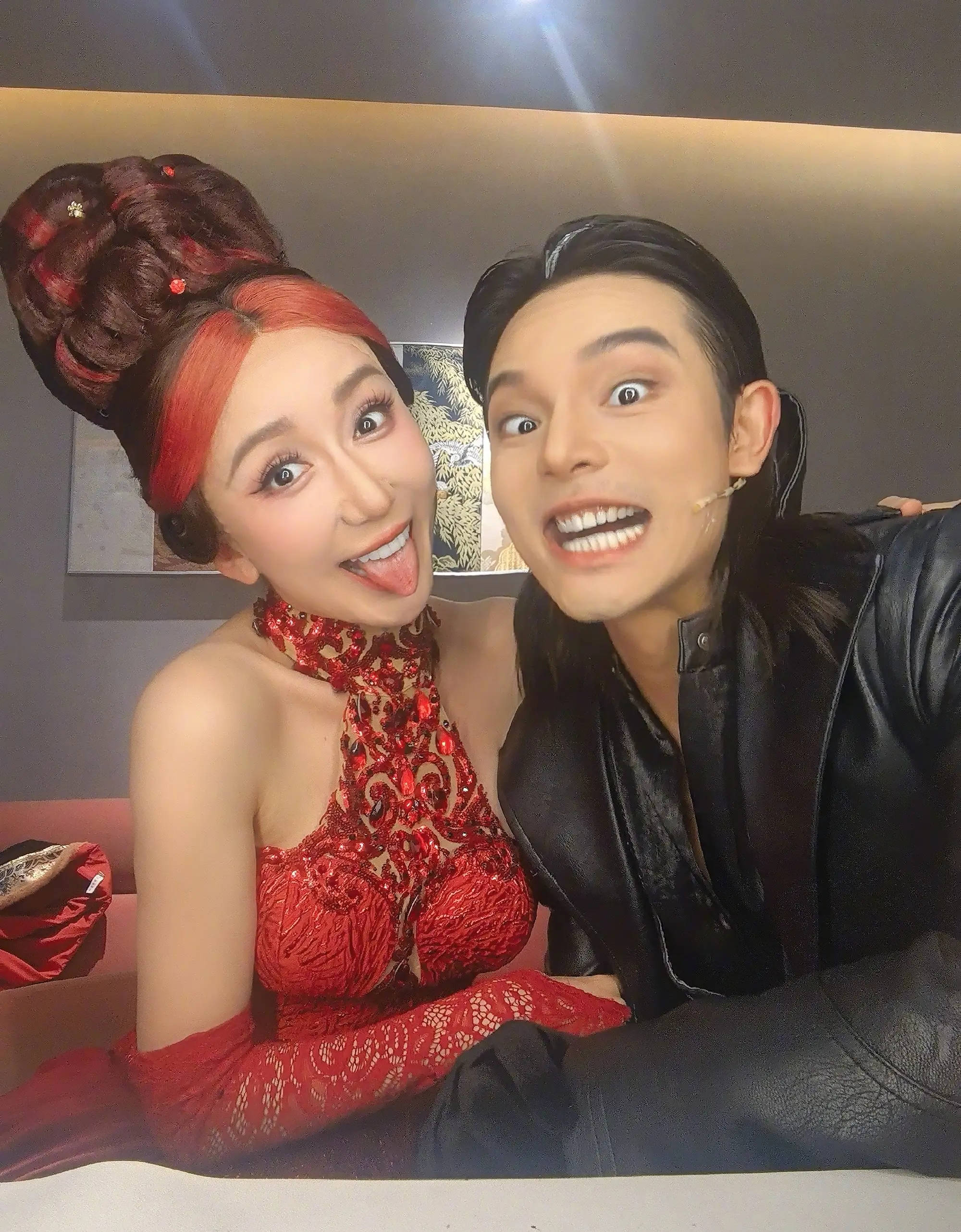 娄艺潇与音乐剧演员叶麒圣同框合影。
