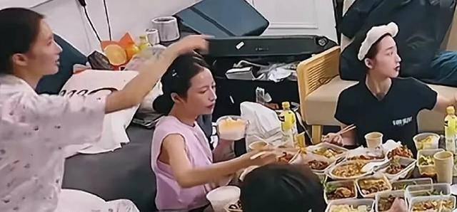 等餐来了之后,她也不管其他团员,就自己坐在那儿把所有外卖都吃完了。