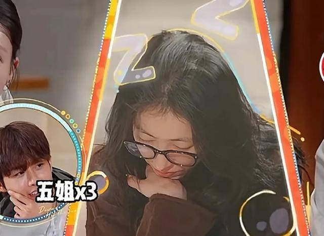 花少团一起回看节目找问题的时候,周雨彤在那儿打瞌睡。