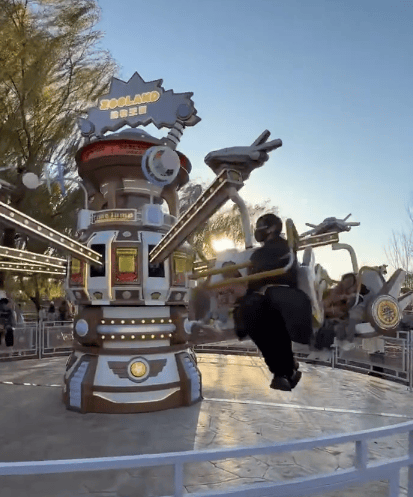 张若昀坐在旋转飞车上,露出大长腿,气质不凡。