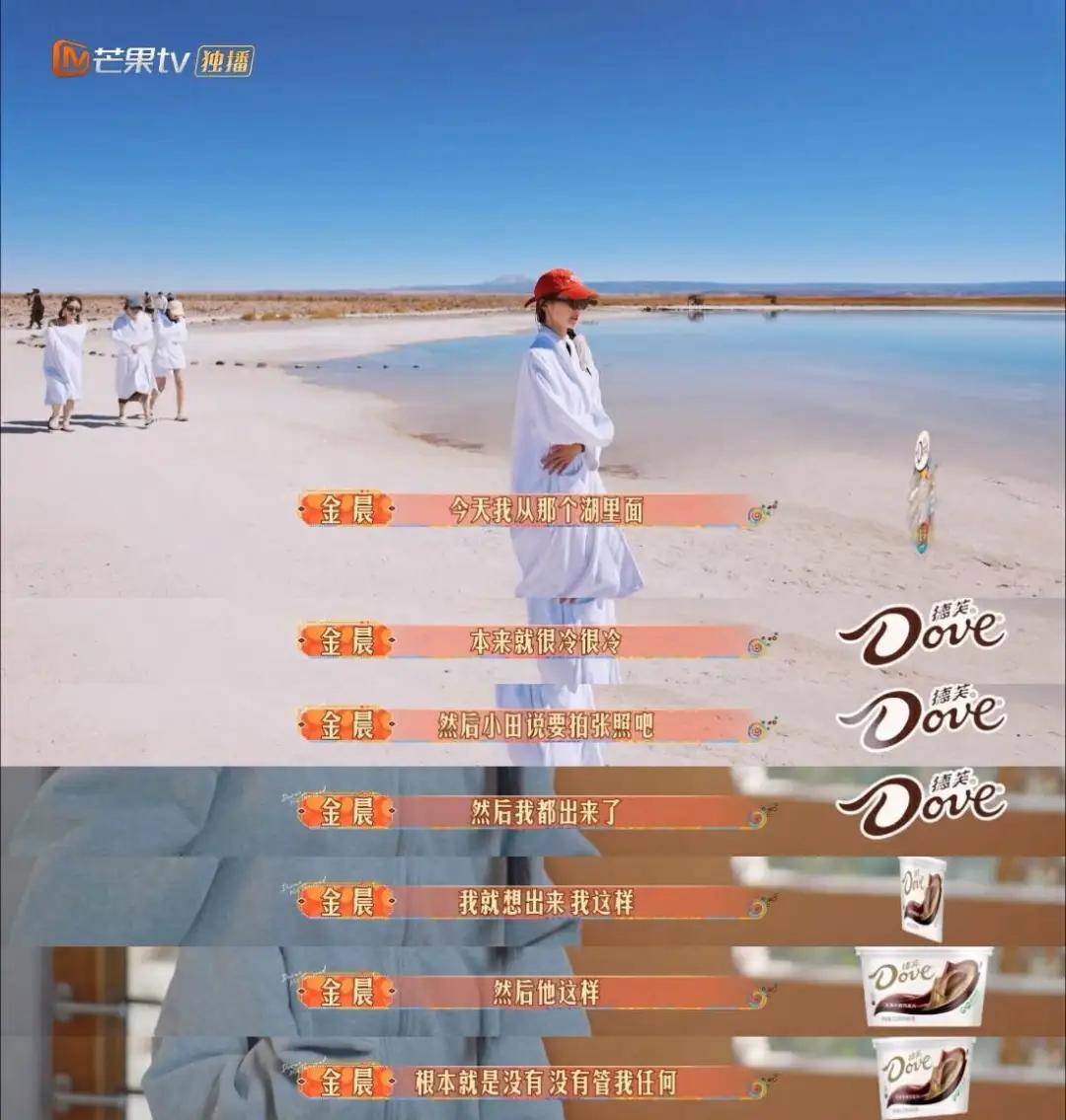 有次大家在水里玩,周雨彤一边说自己不会游泳说自己对水恐惧,一边坦然自若地朝水里走去,到了水里之后直接扒着侯明昊逐渐远离了金晨。