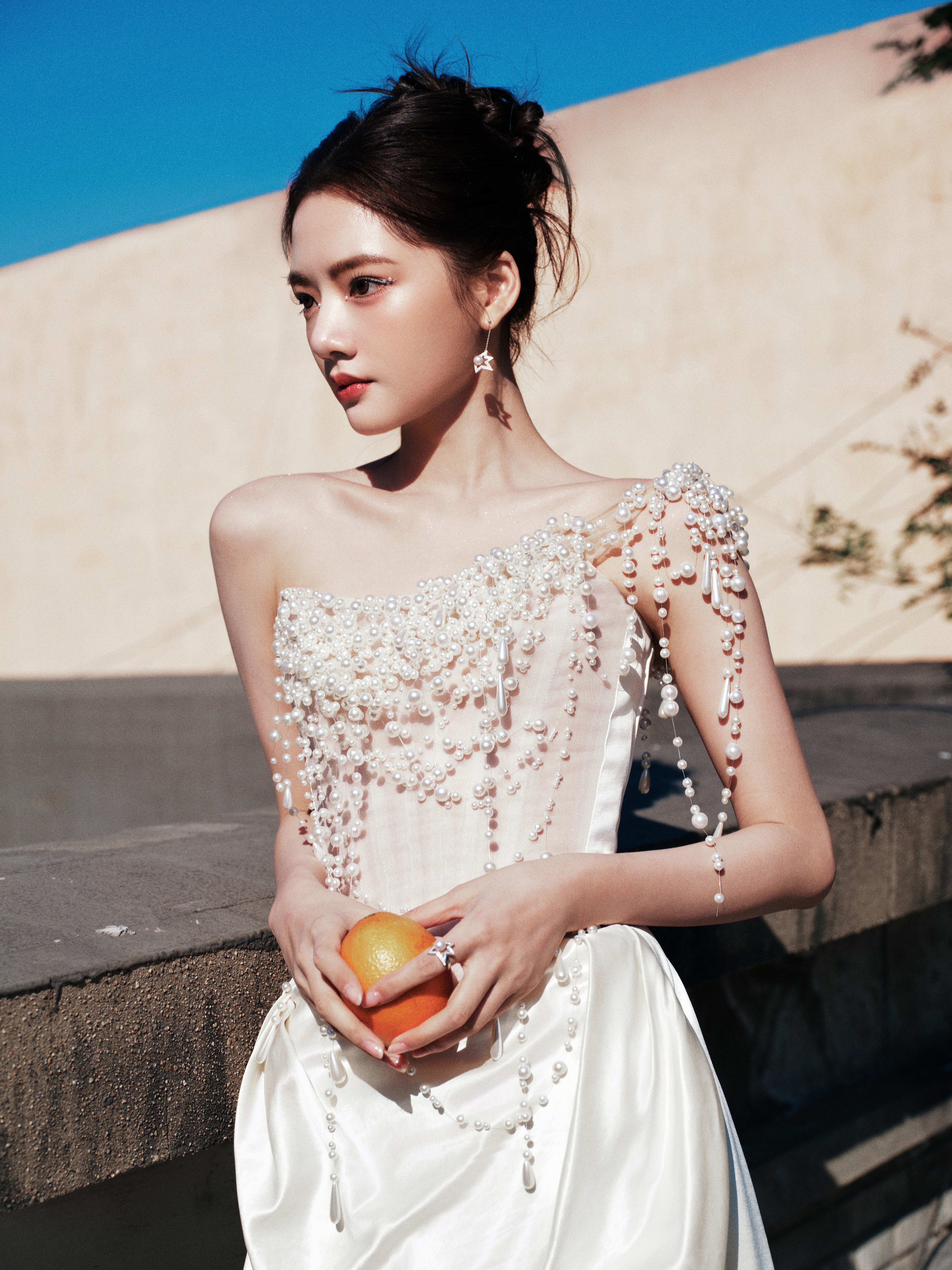 搜狐娱乐讯 11月5日,任敏穿白色珍珠长裙现身活动,照片里的她拿着橘子,身材窈窕,明媚大方。
