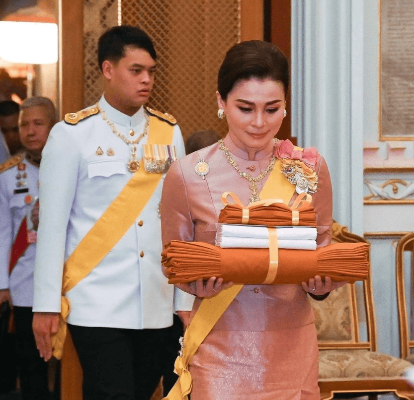 空姐出身如今坐稳后位的苏提达,这地位属实来之不易。虽然现在已然满面春风地和泰王出双入对,看上去一切尽在掌握的样子~