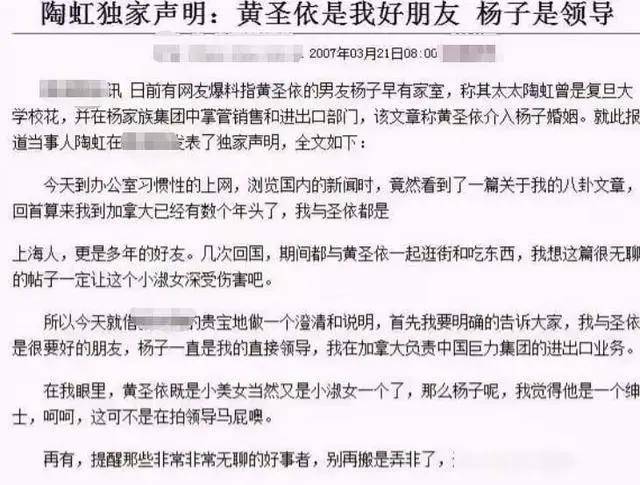 杨海润母女与黄圣依的关系也非常好,当年黄圣依深陷“小三”传闻时,陶虹曾发文为她辩解,还称赞黄圣依长得漂亮,是个小淑女。