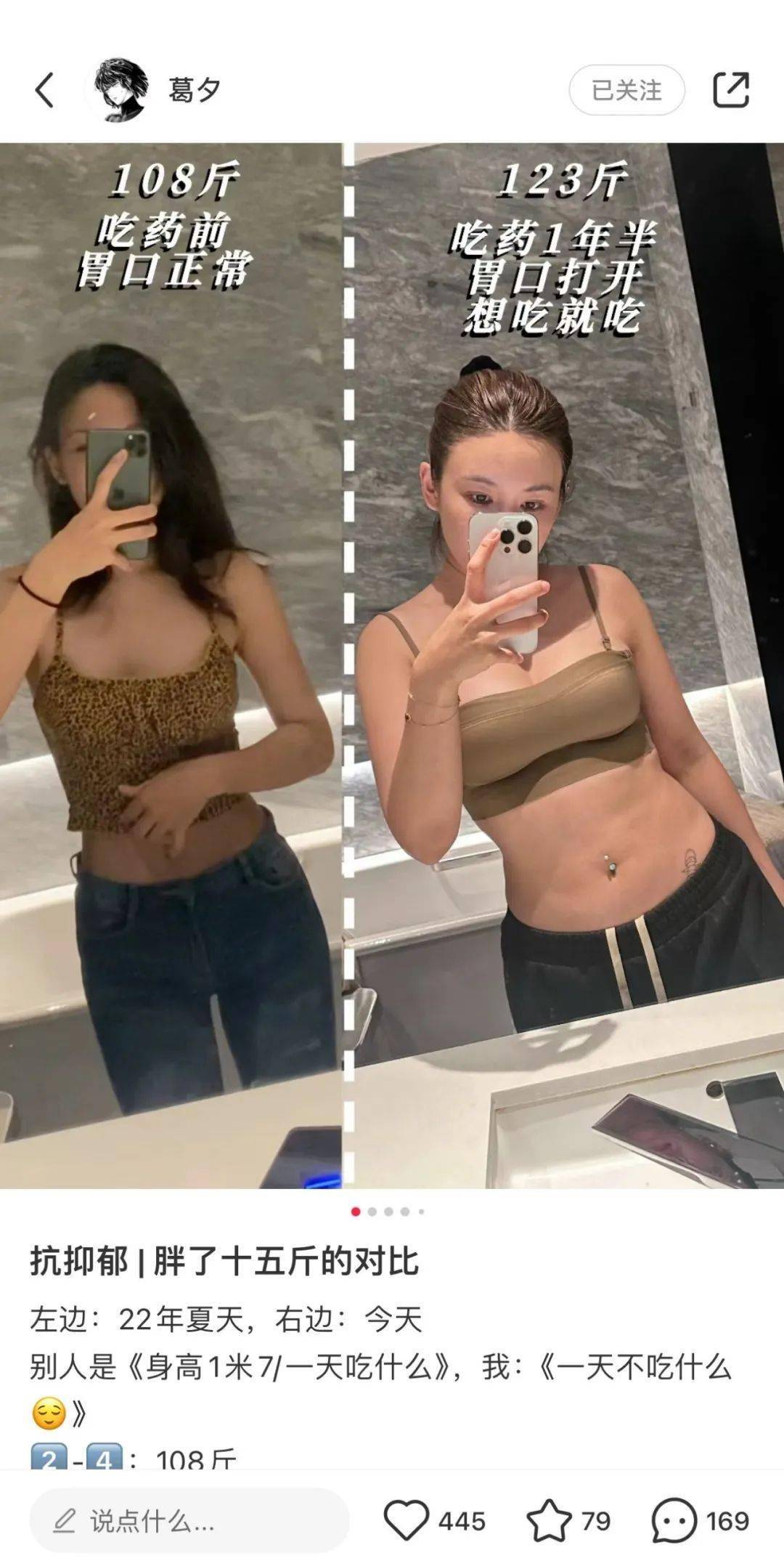 但没有哪个女生会能够一直忍受伴侣的精神PUA+极致懒散:没有孩子,没有共同爱好,各自掌握收入支出甚至女方还要倒贴,生活分居像室友……2022年开始,葛夕因抑郁症服药,导致身材渐渐发胖变形。