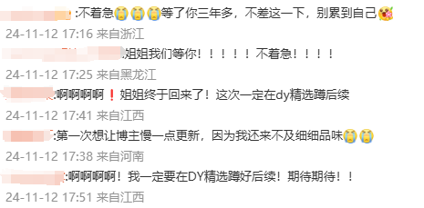 她还在评论区补充回应:“今天没空写小作文啦!过几天忙完了再给大家补上!想念你们!强行么么哒!”