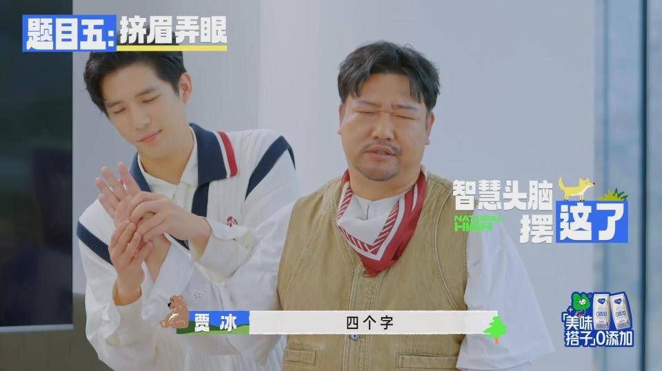 贾冰和王安宇组队玩这个游戏,有一个词是“挤眉弄眼”。