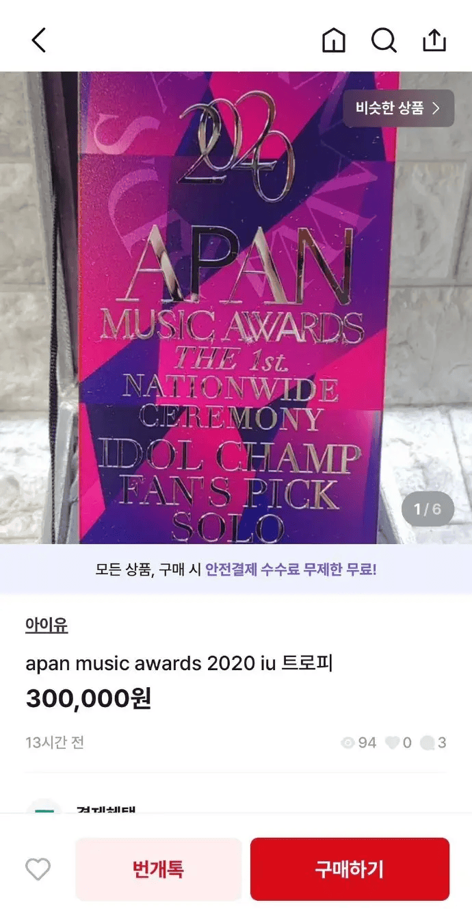 搜狐娱乐讯 近日,有韩国网友发现IU李知恩在2020年获得的奖杯被放在二手网站上售卖,标价30万韩元(约合人民币1542元)。