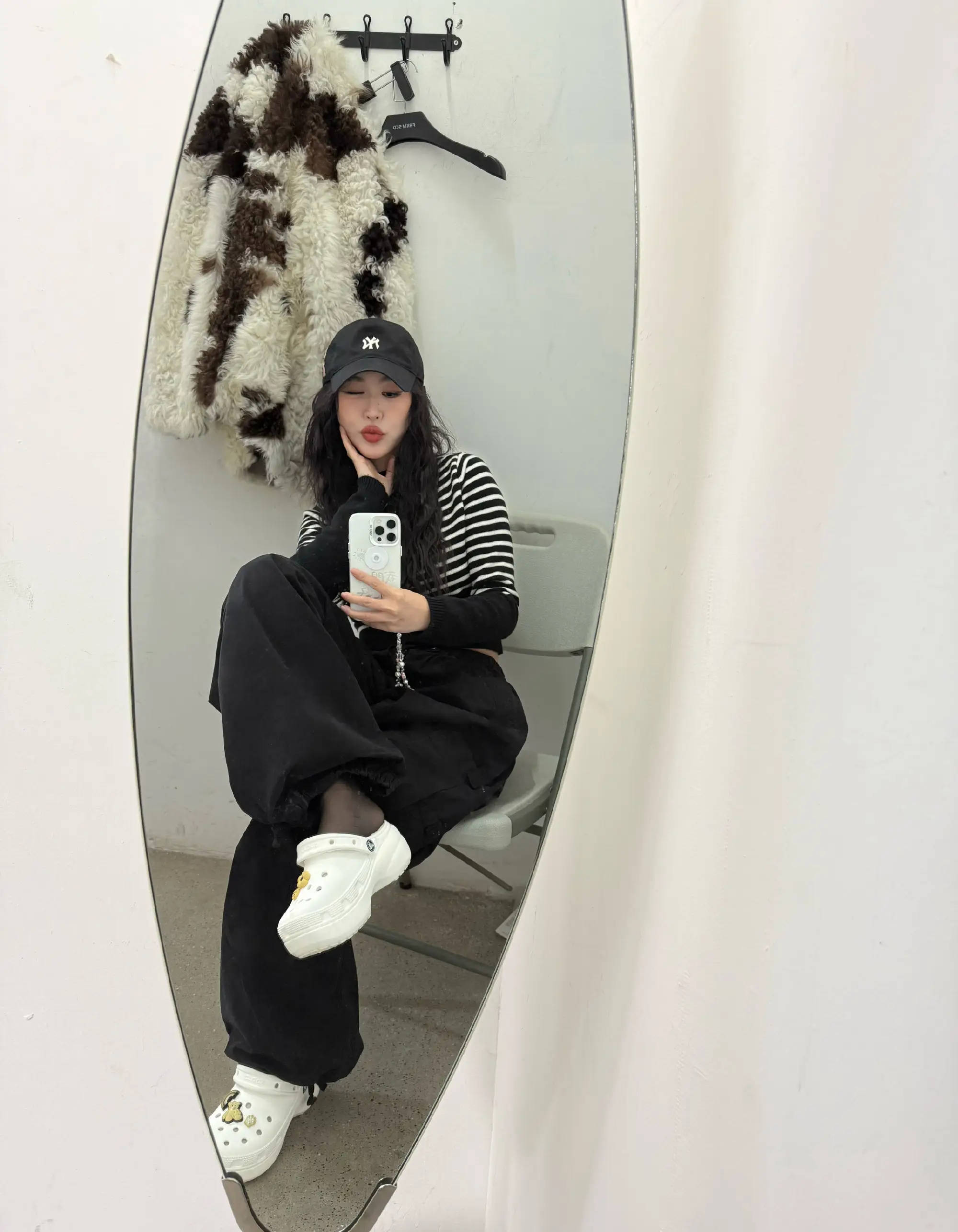 李菲儿对着镜头自拍,嘟嘴wink俏皮又可爱。