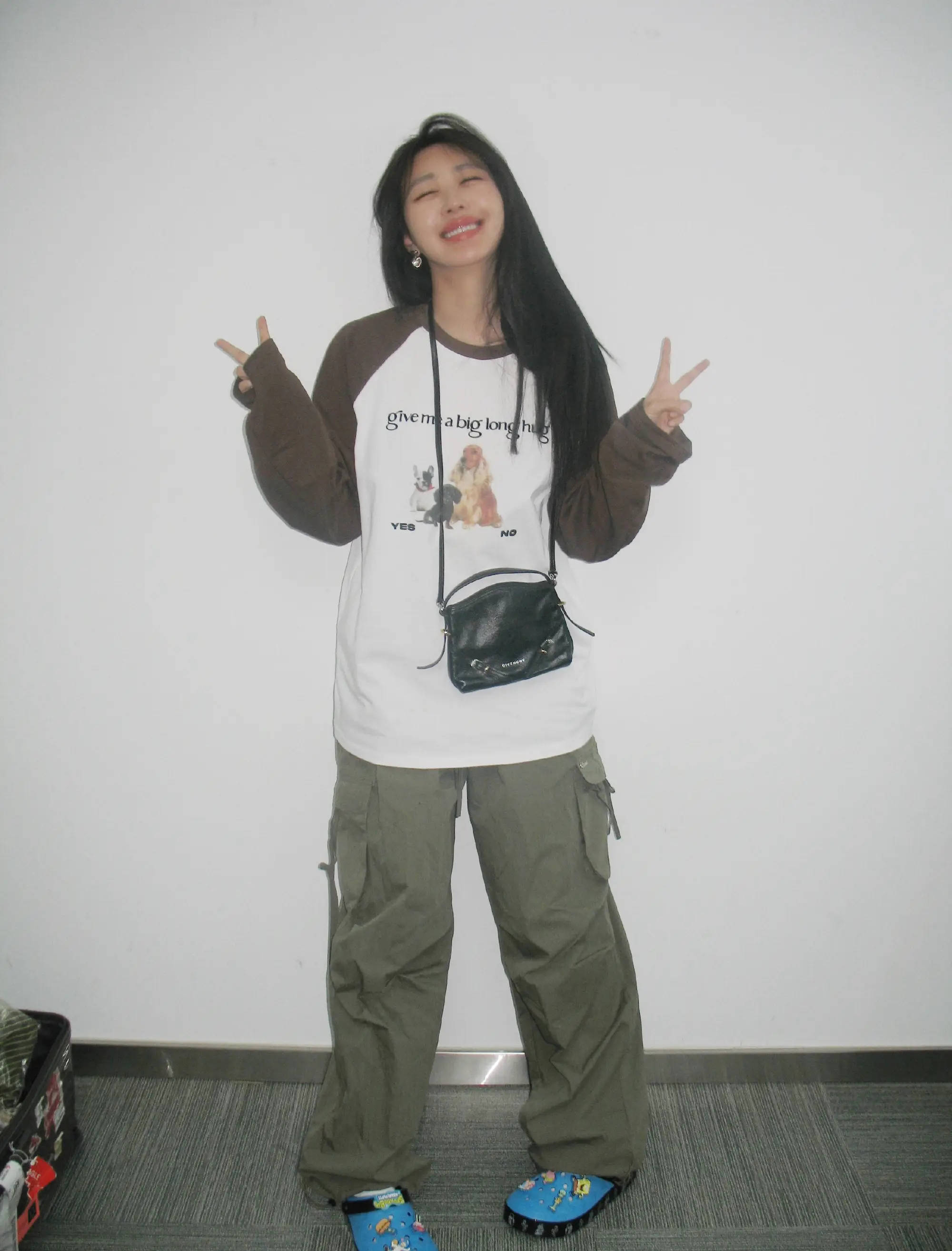 李菲儿面露灿烂笑容,十分阳光明媚。
