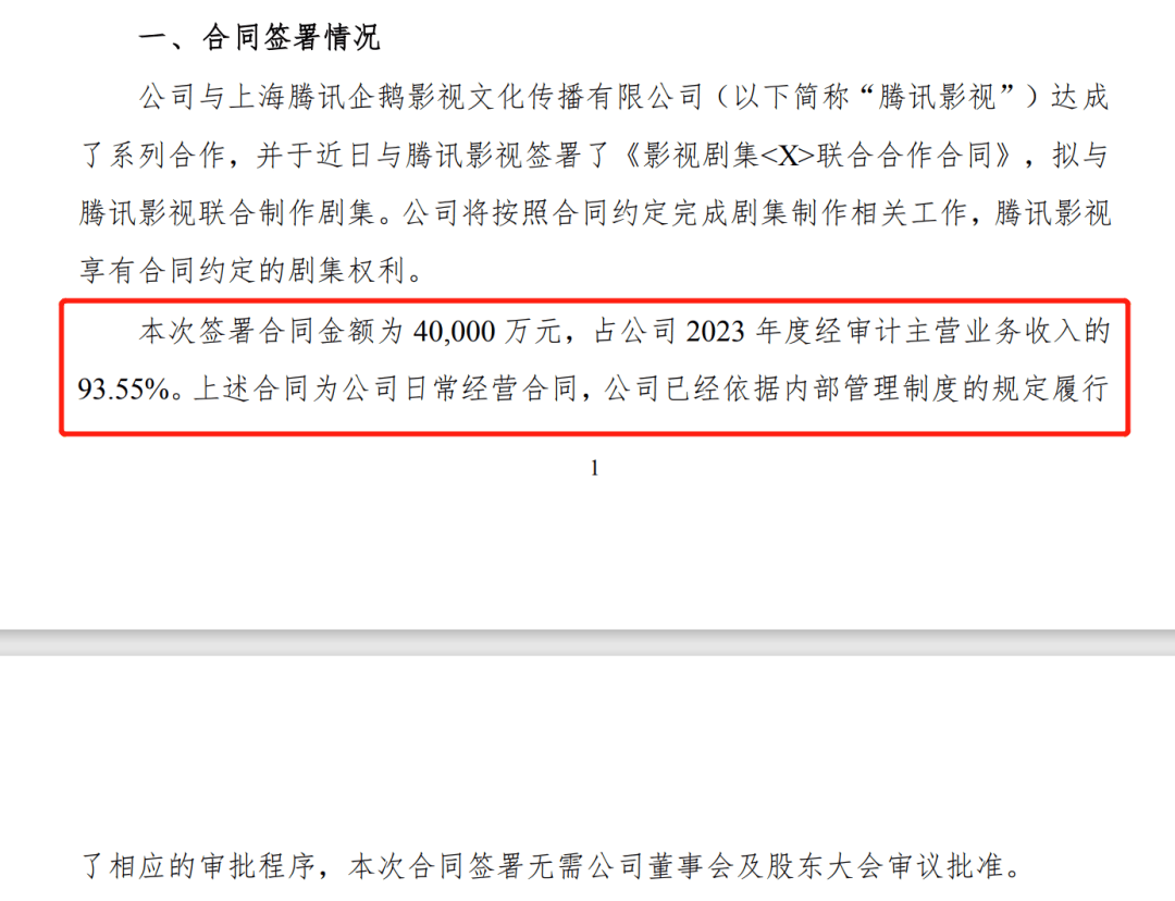 2021年,还称作华录百纳时,该公司就曾公告称,旗下全资子公司喀什华录百纳影视、东阳华录百纳影视以及控股子公司东阳缤纷异彩影视,连续十二个月内与湖南快乐阳光互动娱乐传媒(芒果TV)签订影视剧版权售卖合同、影视剧独家联合开发合同,累计金额为3.21亿元人民币。
