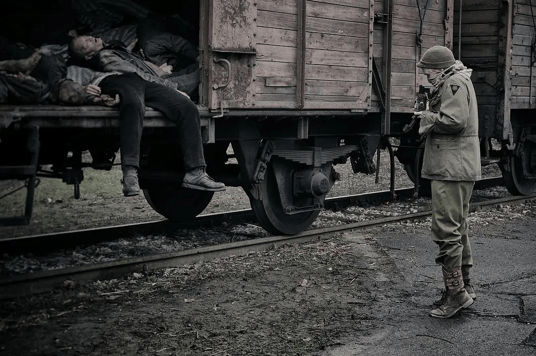 但是,战争最可怕的是什么?其实不是战场上的两军交锋,而是为战争付出的代价。电影用极其残酷的镜头,对准了达豪集中营。一间接一间的牢房、一节接一节的火车车厢,塞满了尸体。