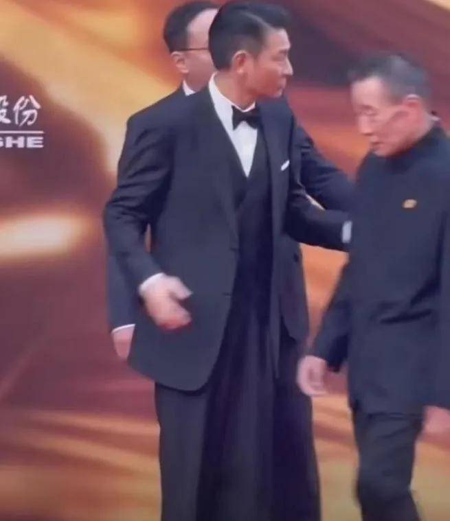 身边的陈凯歌站起来要跟他握手的时候,坐在中间的刘德华第一反应是站起来往后退,让另一边的张艺谋先跟陈凯歌握手,随后自己再弯腰跟陈凯歌握手。
