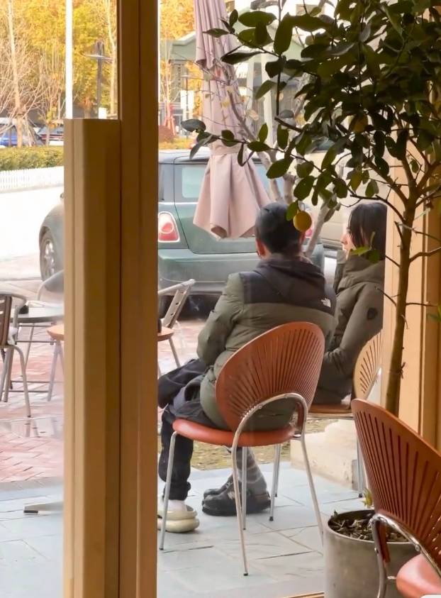 马浴柯穿搭舒适保暖,与梁洛施一起约会喝咖啡。