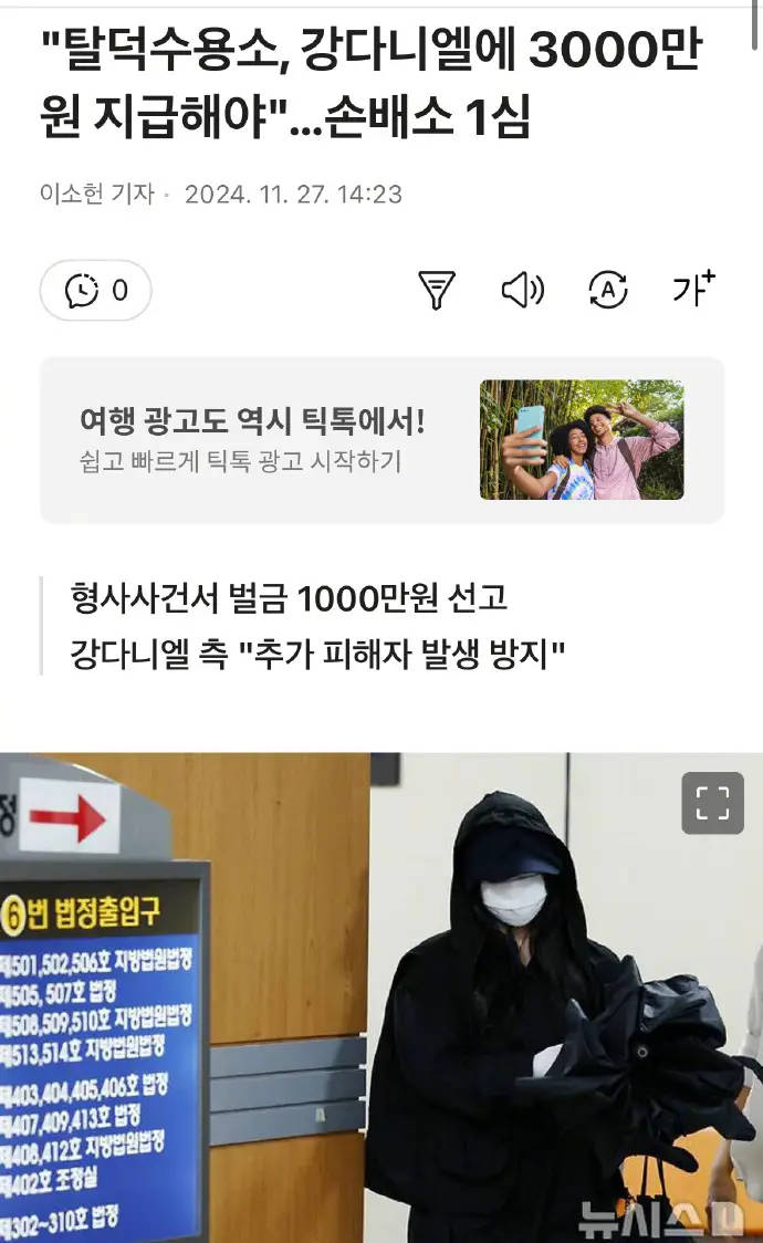 据悉,A某2022年在“脱粉收容所”里上传了题为“国民男友演员爱豆的淫乱私生活”的视频,以损害姜丹尼尔名誉的罪名被移交审判,今年9月,刑事诉讼一审被判处1000万韩元罚款,随后,姜丹尼尔方发公告提出1亿韩元的民事诉讼。