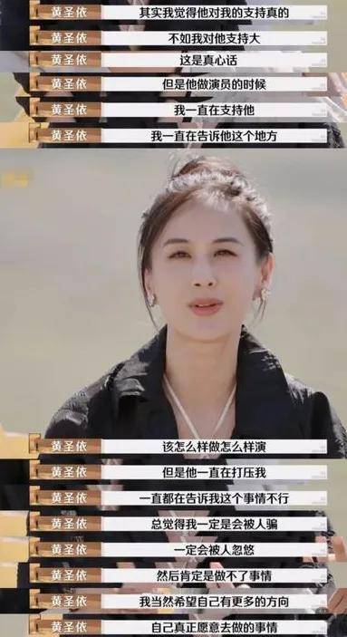 黄圣依好几次提到,杨子一直打压她,不支持她的工作,觉得她做不好。