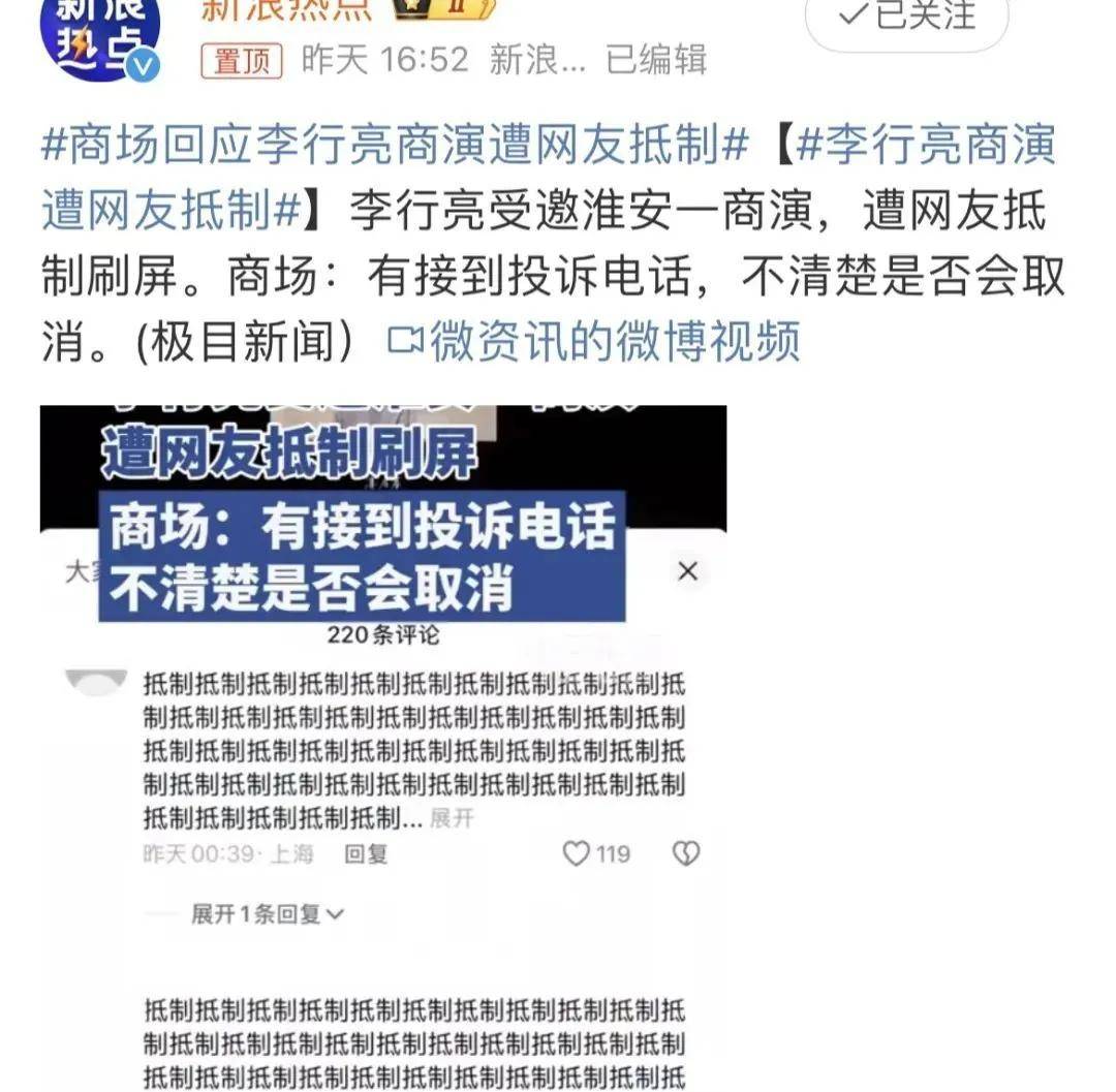 可惜这钱还没装进口袋,变故就发生了——李行亮的商演活动接连被抵制。