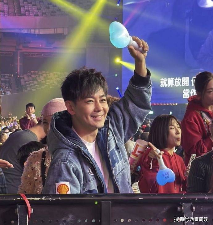 昨日,林志颖身着蓝色的牛仔连帽外套,里面搭配着白色的T恤,他手里拿着灯牌现身在台下的摇滚区域,也没有戴帽子或者墨镜来武装自己,笑容十分的灿烂,跟着旁边的粉丝一起挥舞起来,心情特别的开心。
