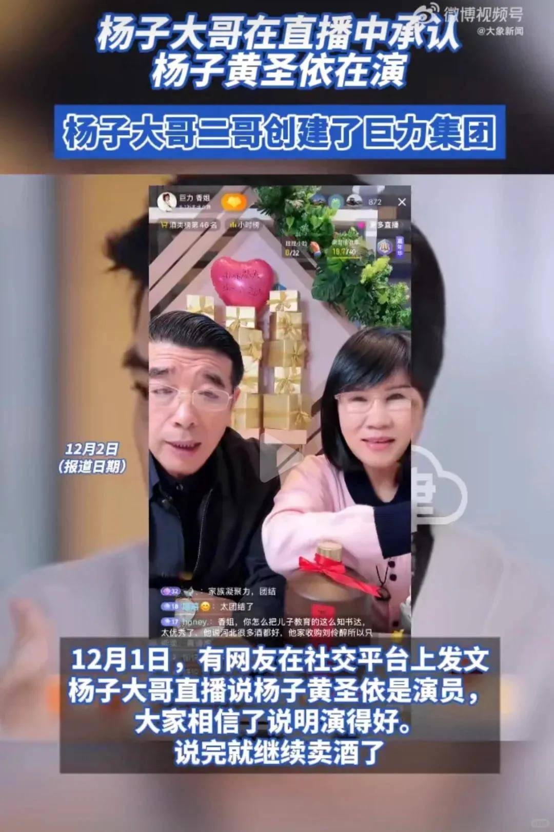 于是杨子的哥哥在直播间当中表示两个人就是演的。