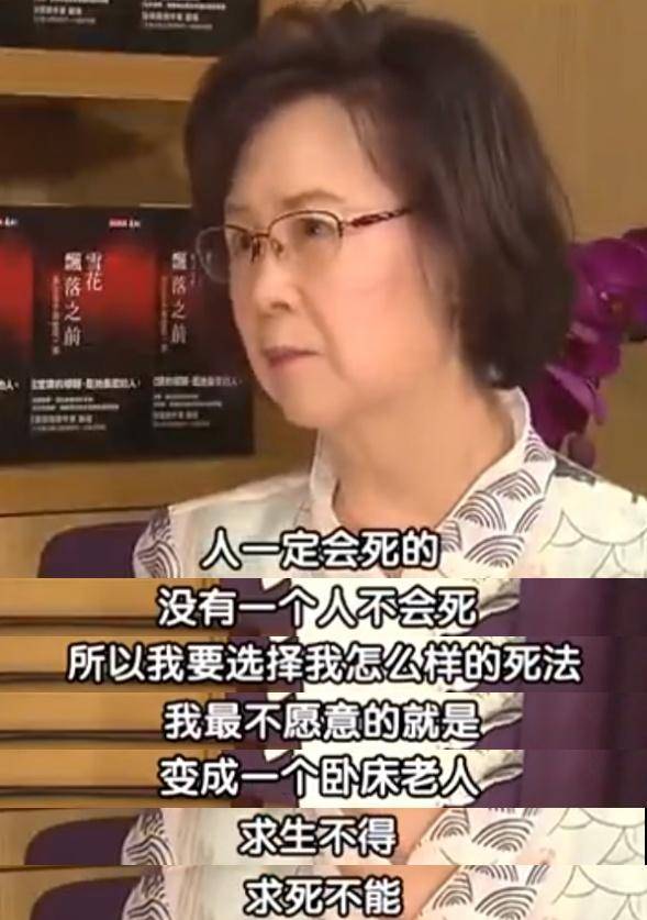 她说自己见过太多老人被病痛折磨直至死亡的过程,她不想那样,她想自己为最后的人生大事做主。