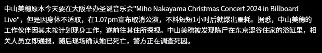 不过最后还是强调一下,中山美穗死因尚未确定,可能是意外,可能与压力或者疾病有关,无论如何希望大家能够保重身体,注意身心健康。