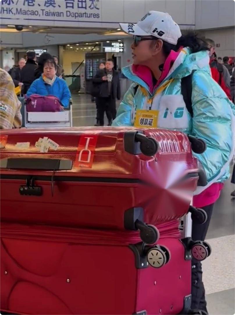 不过这次蔡明足足准备了三个行李箱,看来即便是老艺术家出门的行头也不少。