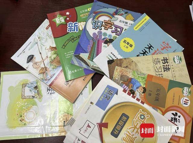 五年级学生的语文及部分教辅资料 摄影 李兴罡
