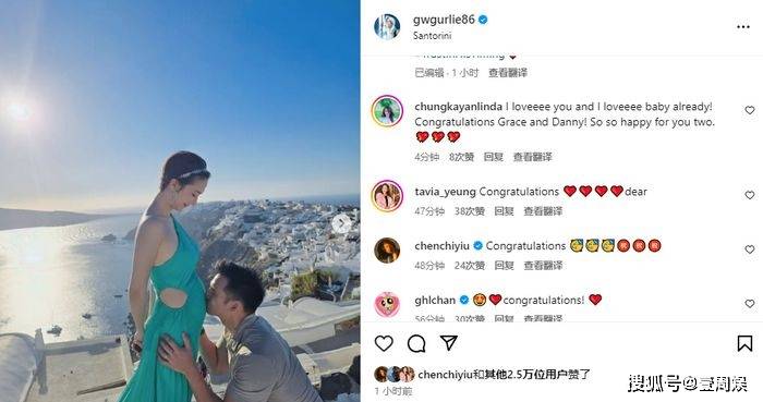 除了好友钟嘉欣、杨怡、陈自瑶等人,给王君馨送上祝福之外,还有不少的网友都替她感到开心。从画面中可见,似乎两人在希腊的圣托尼拍下的美景,画面浪漫又温馨,王君馨穿着蓝色的长裙,状态相当不错,满脸的笑容,老公也很帅气。