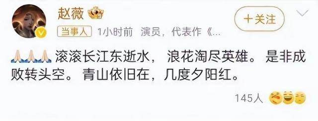 而且从她之前社交账号 所发的这一些文案就可以得知,她一直是非常喜欢赵薇的,在得知他的情绪,郁郁寡欢的时候,甚至还会表示:“她仍然是我最爱的那个姑娘。”