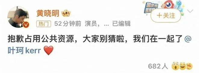 但突然,黄晓明却删掉了和叶珂的官宣微博。