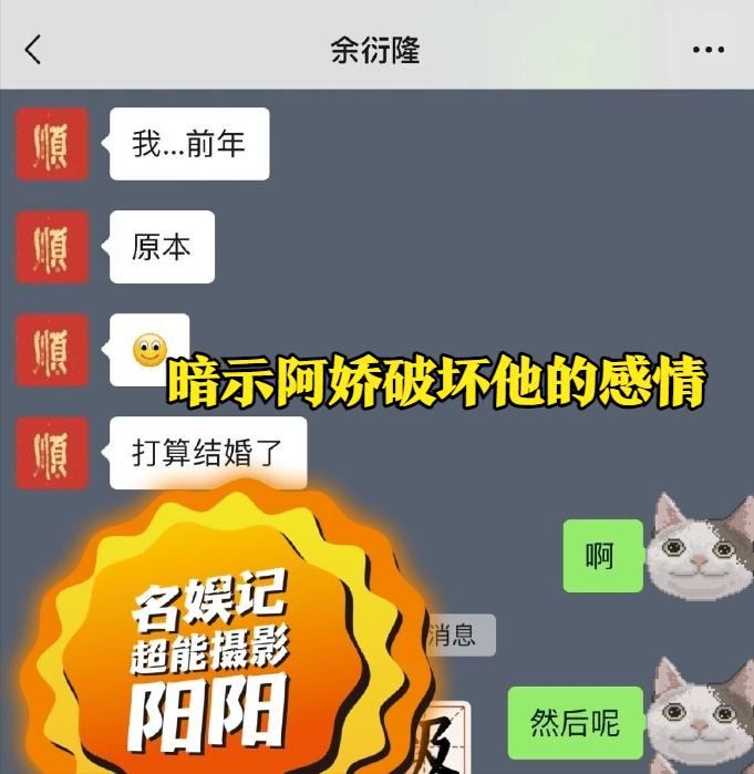 余衍隆还和女友吐槽,阿娇时常给他发消息骚扰他,让他很烦。