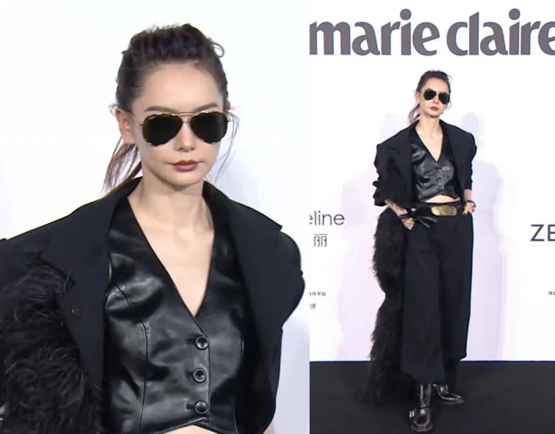杨紫穿了皮衣和喇叭裤,戴上眼镜更酷了。看了她那么多套红毯造型,突然觉得比起各种公主风和艳丽的裙子,她更适合酷一点的打扮。