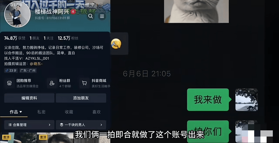 基于想赚钱且合作打造账号的目的,两人便开始了第一段视频的合作,由于播放量非常高,且话题很吸引人,所以引发网友共鸣,两人达成长时间合作的意向。
