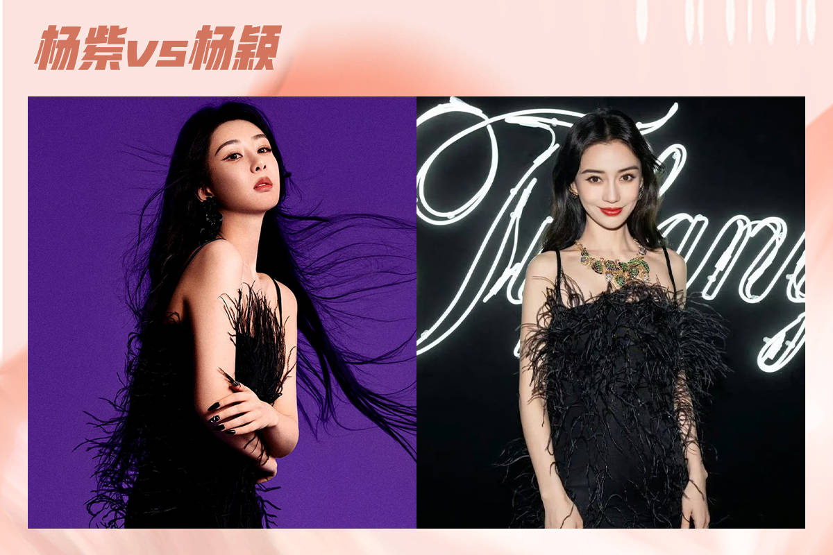 这件黑色羽毛吊带裙曾被杨紫和Angelababy穿过,一直走邻家女孩风的杨紫,这次挑战全新风格,烟熏眼妆搭配吊带黑裙纯欲十足,而五官极具混血感的Angelababy,黑裙搭配一抹明艳红唇,真是性感又大气。