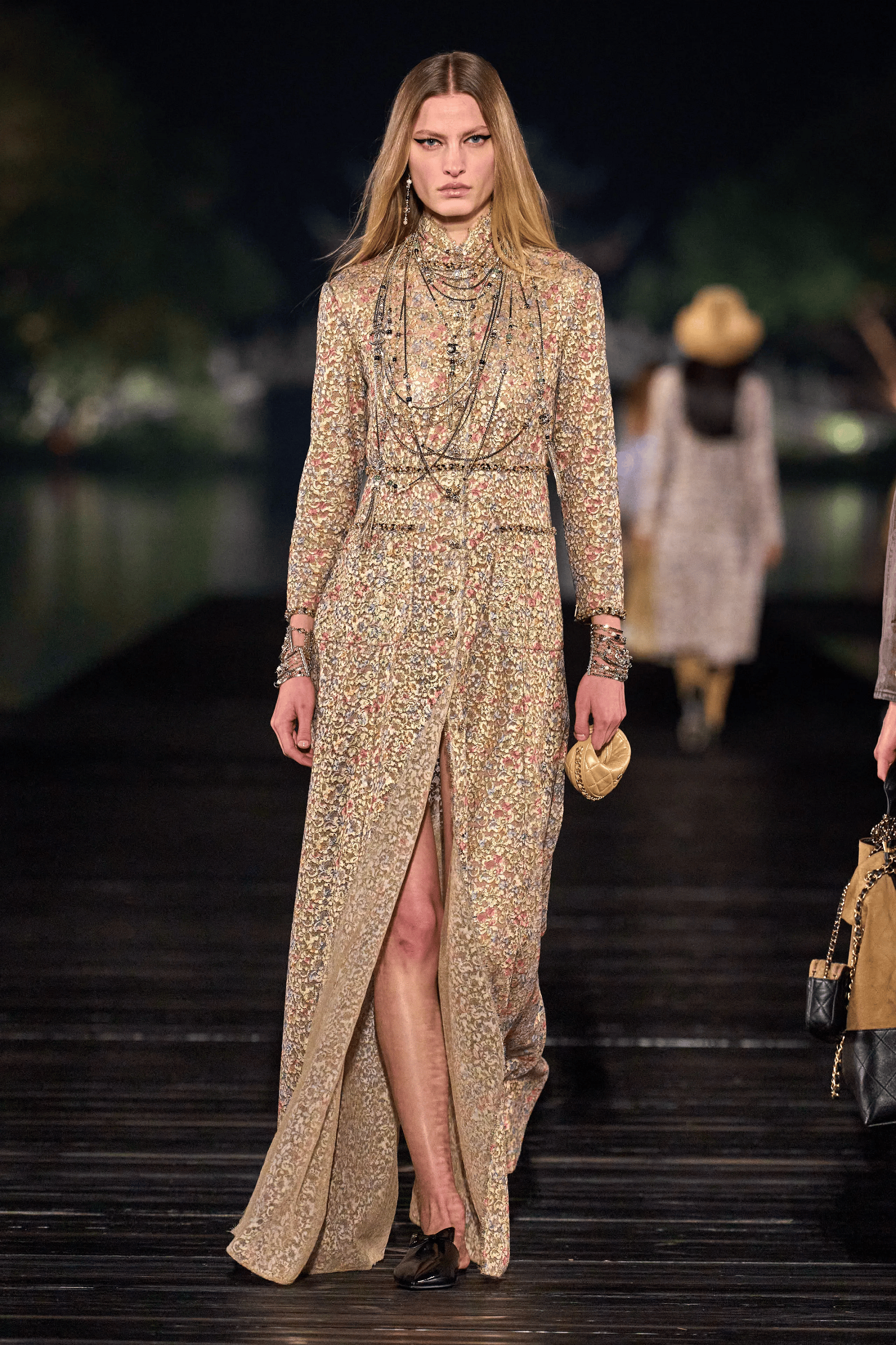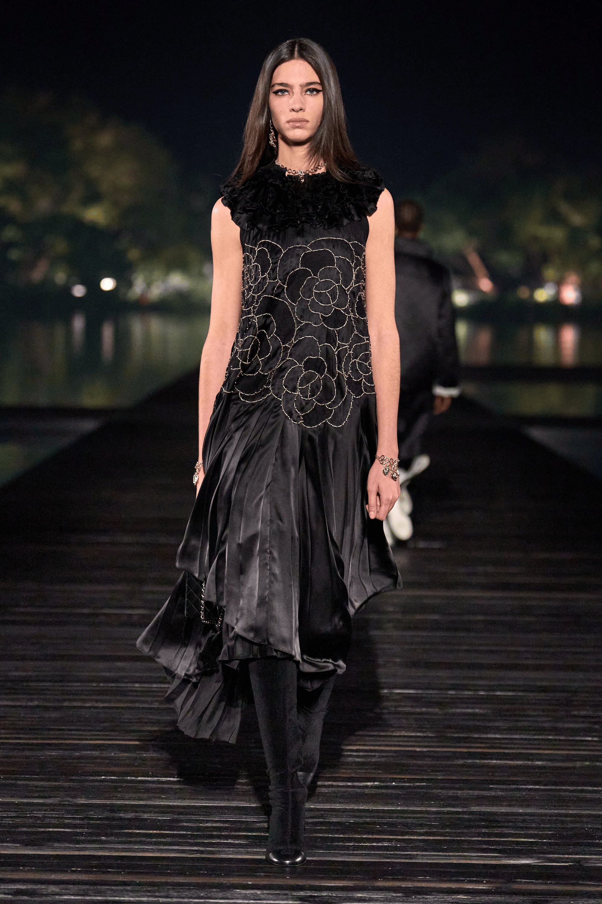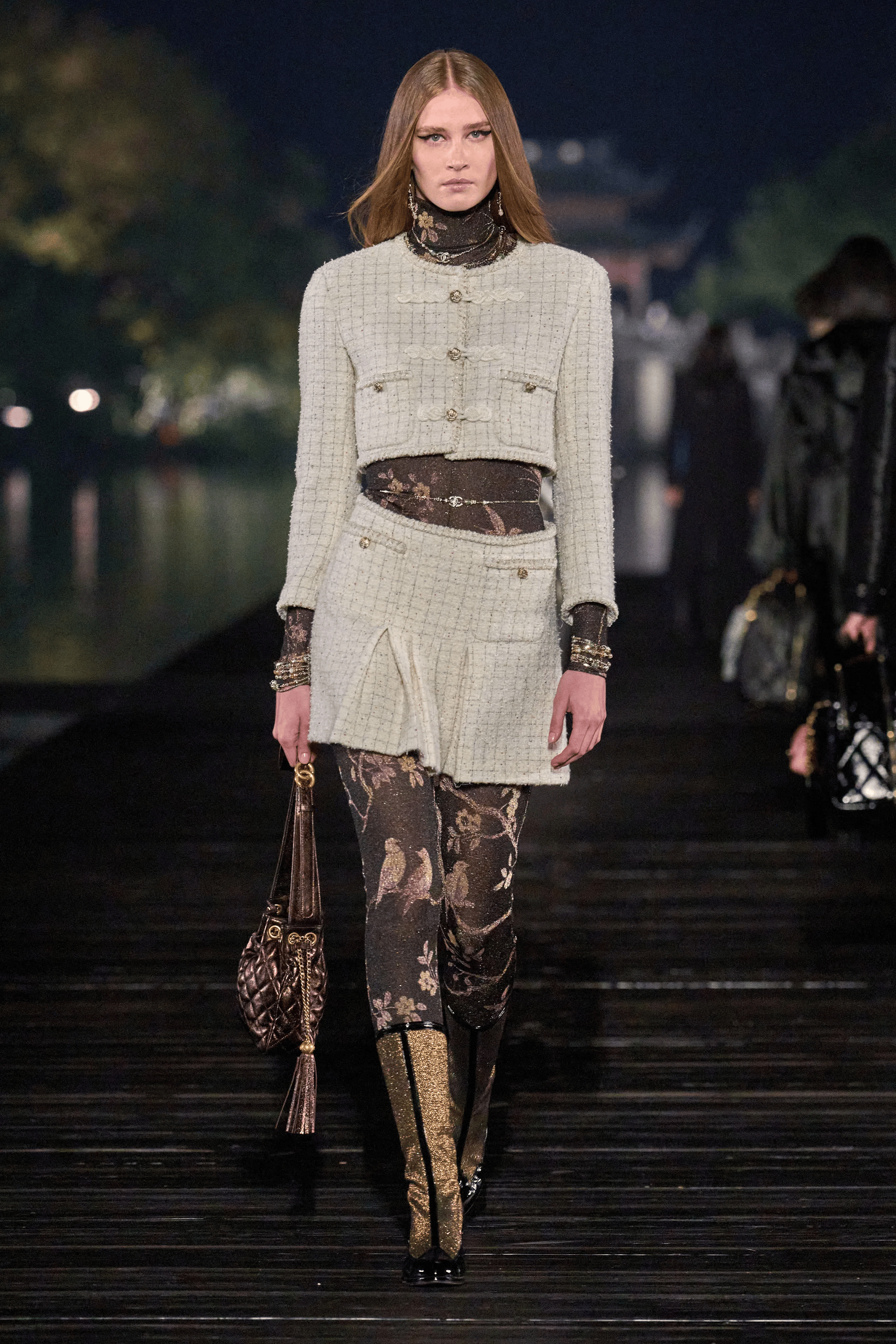 Chanel 2024/25高级手工坊系列,从嘉柏丽尔•香奈儿珍藏的乌木漆面屏风汲取灵感,将中国传统美学融入现代时装设计。整个系列以黑色、棕色等深色调开场,再以翠绿、粉红和天蓝点缀,呼应了漆器的动人光泽。渐变的蓝色牛仔裤如湖面涟漪,为作品注入生命力与现代感。从形象管理到色彩美学,与妮彩开启你的魅力之旅!