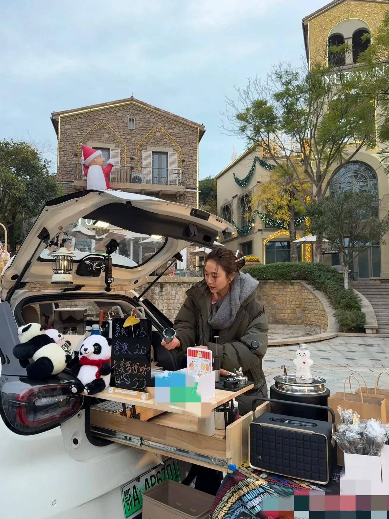 从曝光的画面看,姜妍他们是在摆路边摊,通过这种方式来赚钱。身旁的小汽车就是他们的操作台,车上有他们制作东西要用的咖啡机。