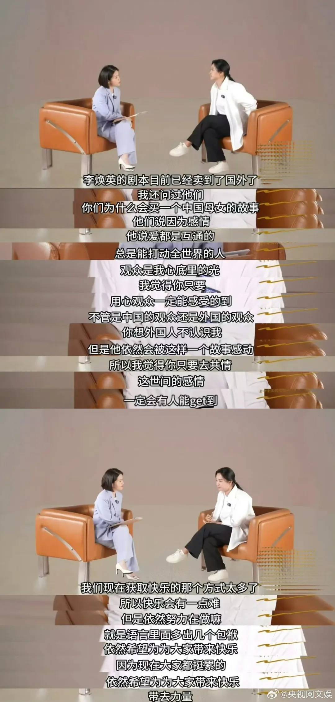 谈及《你好,李焕英》是否能打动国外的观众,贾玲表示感情是互通的,创作者只要用心,观众就一定能感受到。作为一名演员,贾玲很开心给大家带去快乐,同时作为一名导演,她也很愿意把自己的所想表达出来,“我从人民群众里面走出来,我想用各种各样的载体表达出来,用心讲好每一个故事。”