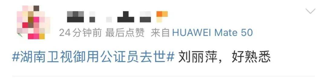 据新湖南客户端消息,与湖南卫视长期合作的公证员刘丽萍已于今年9月底去世。
