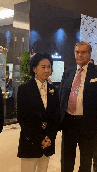 去东京电影节走红毯,穿着劳伦斯·许的高级定制礼服,佩戴瑞士奢华珠宝品牌Mouawad与外甥女何锶珩的联名珠宝,贵气逼人。感觉经典TVB港剧《珠光宝气》的剧本就是给她写的。