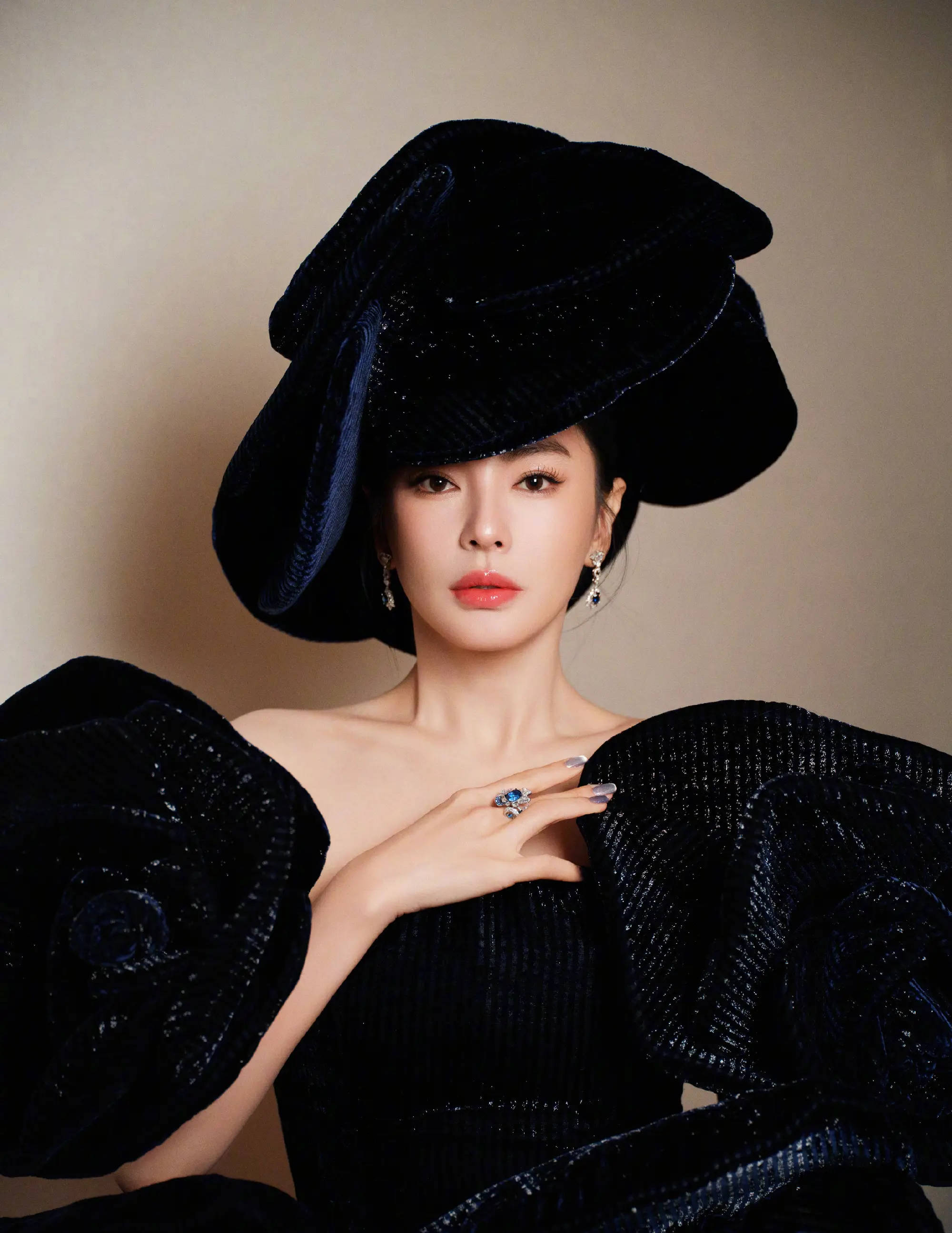 张雨绮穿复古蓝色鱼尾裙气质佳!