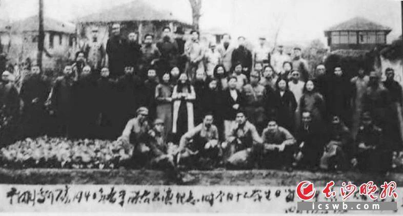 抗战时期,田汉与湘剧、平剧抗敌宣传队队员在长沙留芳岭合影。资料图片