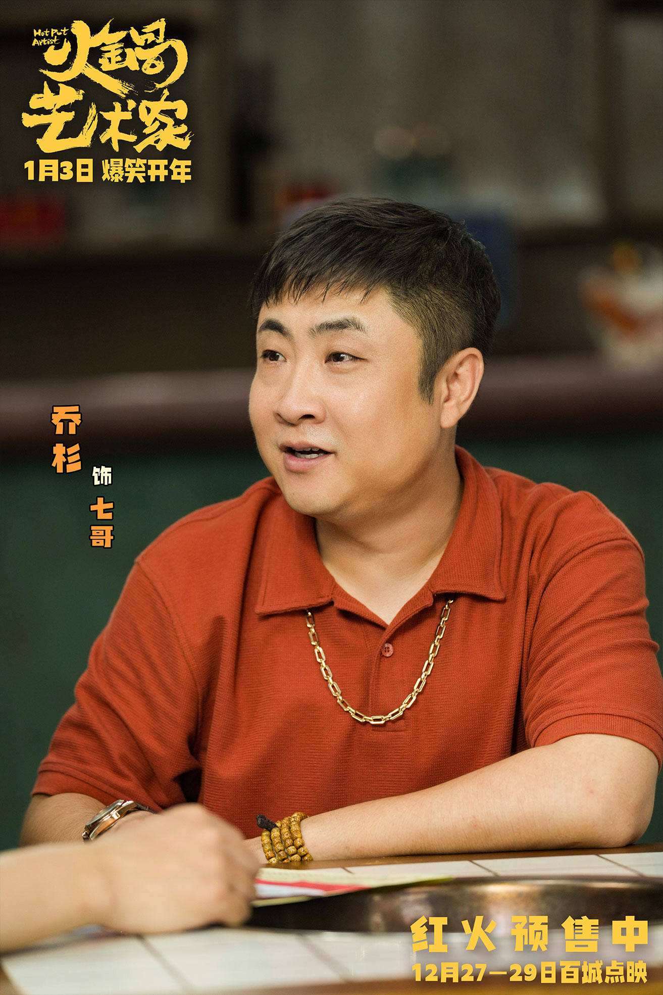 电影讲述了废柴导演李如意(崔志佳 饰)跨界火锅圈,临时组建草台班子,为争夺百万奖金而花样百出的爆笑故事。在最新释出的一组剧照中,更是通过不同的面部表情和肢体语言展现了影片各色的人物性格,疯狂干饭的东北小伙李如意、笑眼盈盈的电台主播袁媛(焦俊艳 饰)、乐天派的老丈人袁飞(张琪 饰)以及用超萌比心献上“小诚意”的火锅店对手陈华柳(于洋 饰)。眼珠子滴溜溜转、手脚灵活的伙计小天(宋小宝 饰);上门讨债反被火锅店圈粉的七哥(乔杉 饰),更有举杯开炫的抠门霸总张磊(魏翔 饰)、一脸委屈端坐轮椅的贾总(艾伦 饰),每个人物举手投足间都是笑点,多位喜剧熟人齐聚,为电影增添重磅笑料。