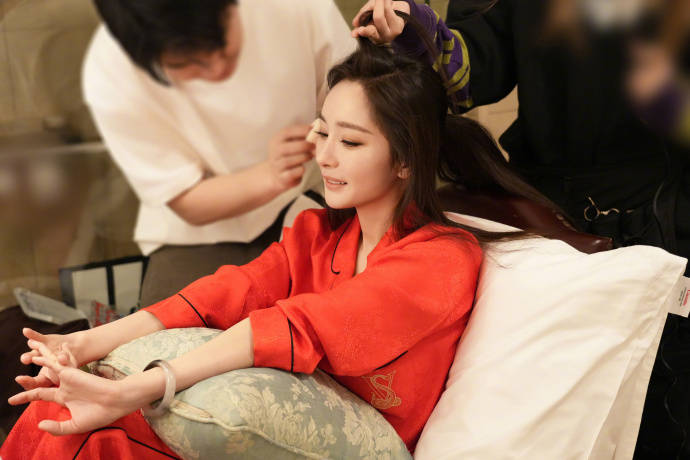 画面中的杨幂穿着红色的睡衣,怀中也垫着一个抱枕,正悠闲的坐在沙发椅上,任由造型师为自己摆弄着发型和妆容。她那一头乌黑浓密的秀发也显得特别的柔顺,这也让人十分的羡慕了。杨幂也摆弄着自己的手指,而手腕上的那个翡翠手镯也彰显了她的贵气。此时,也可以看到她的皮肤也特别的白皙水嫩,五官一如既往的精致迷人,浅浅的笑容也露出了洁白整齐的牙齿,清纯甜美的形象也尽显妩媚动人,简直美得让人舍不得移开眼了。