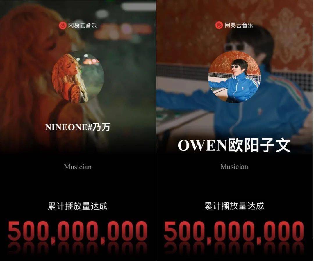 此外, 乃万、欧阳子文、大D、Oliver、扬布拉德也晒出了自己在网易云上的累计播放量!