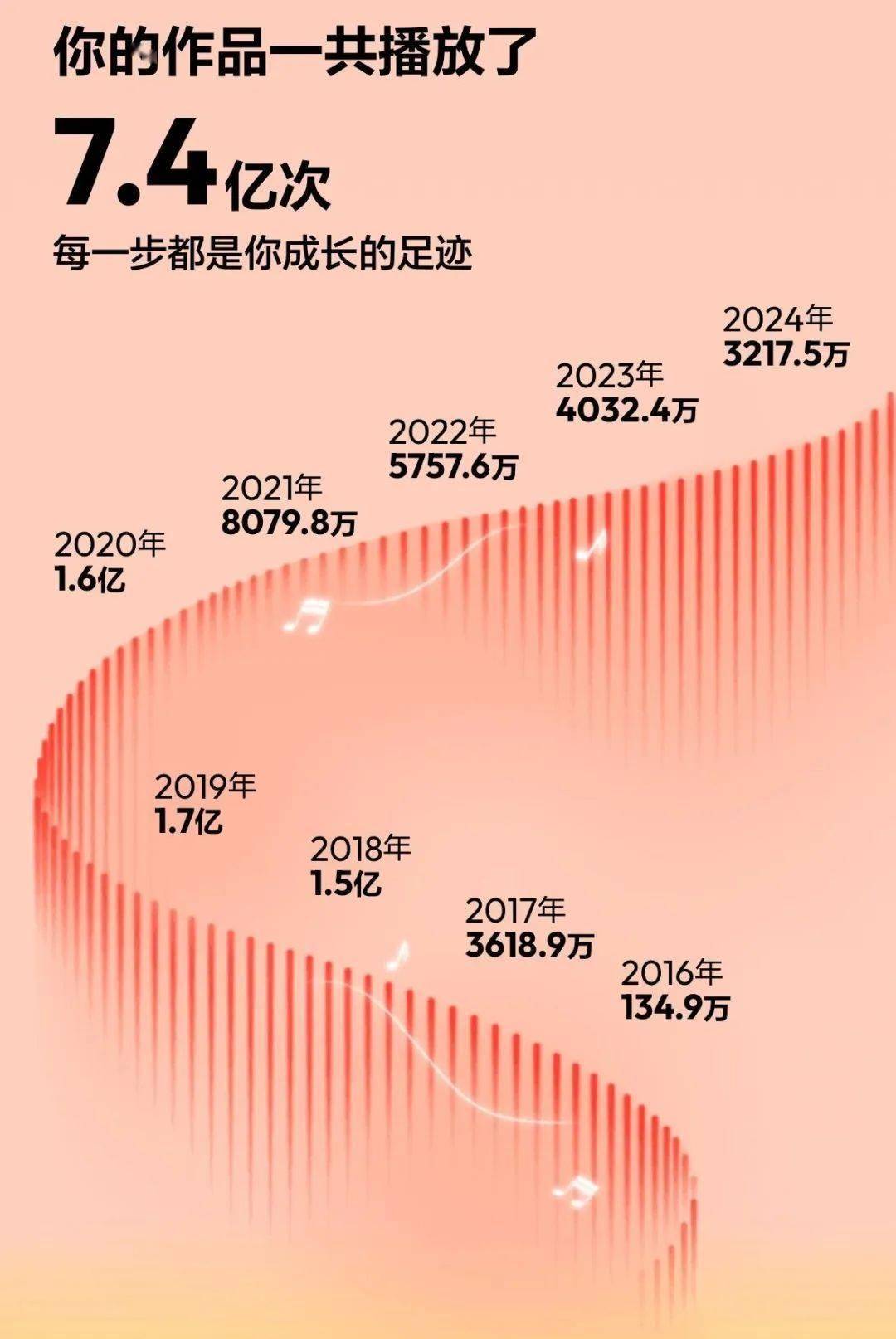 徐真真晒出了自己的音乐成长足迹!从2016年至今,已经播放了 7.4亿次!