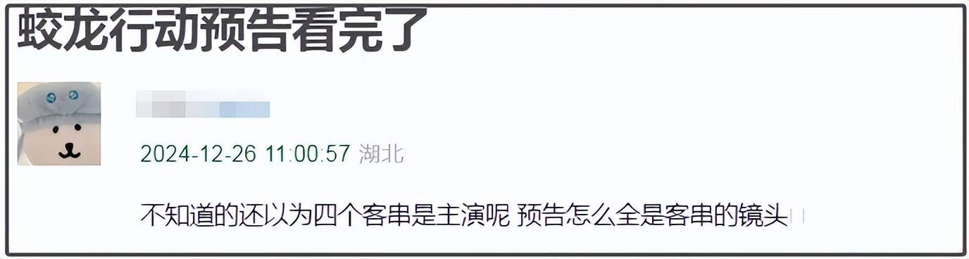 其二是《蛟龙行动》演员表演能力一般,预告片中客串演员镜头比主演还多,有点主次不分,让人看得一头雾水。